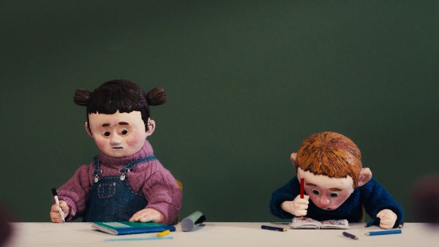 The storytelling, however, isn’t the only element of the filmmaking to impress here, with Precious sporting a distinct stop-motion aesthetic which serves to heighten the sense of isolation in Julie’s school life and inject the short with a haunting quality. As mentioned earlier, it’s the character design that truly stands out, with Julie and Emile portrayed through authentic designs, while all the other children looks the same – oversized heads with no hair, their clothes the only way to tell them apart.