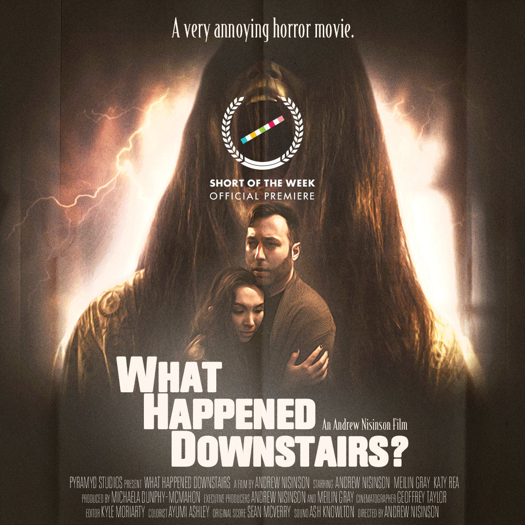 What Happened Downstairs? is written and directed by Andrew Nisinson, and the filmmaker is also its star, alongside his partner, Meilin Gray. This arrangement allows a degree of emotional authenticity to permeate that is rather surprising. Though arch on its face, the script draws upon the duo’s personalities and was itself born out of late-nite horror film binges where the couple would contemplate what they would do together in a horror-like scenario. Nisinson notes that,