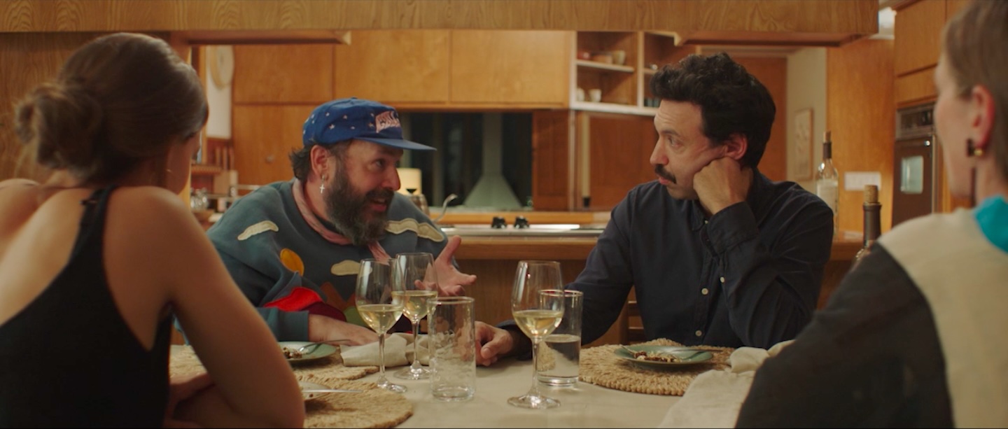 Much like a memory we can’t quite piece together, Pillow Fortress shifts and transforms as it unfolds. What begins as a laid-back hangout film – where we’re seated around the dining table listening to Tommy recount how his old neighbour was allegedly sleeping with Lady Gaga – gradually morphs into something far more unsettling as subtle power dynamics emerge. As Coté observes, “if we’re inclined to judge them for their pettiness, then the situation is funny, but a slightly different angle might reveal that this is also the stuff of all the big-boy tragedies.”