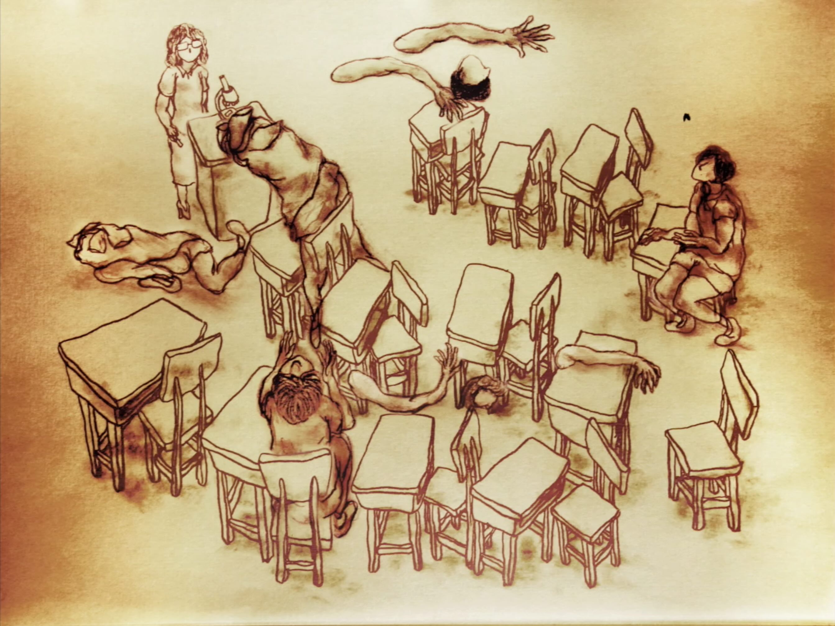 A hand-drawn animation rendered in charcoal pencil on paper, Fur screened at both Annecy and Sundance and introduces its central emotional premise with deceptive simplicity: a young student makes eye contact with a classmate. Although this moment initially suggests a familiar narrative of adolescent attraction, what unfolds over the ensuing six minutes defies expectation, pushing steadily toward something far stranger and more unsettling.