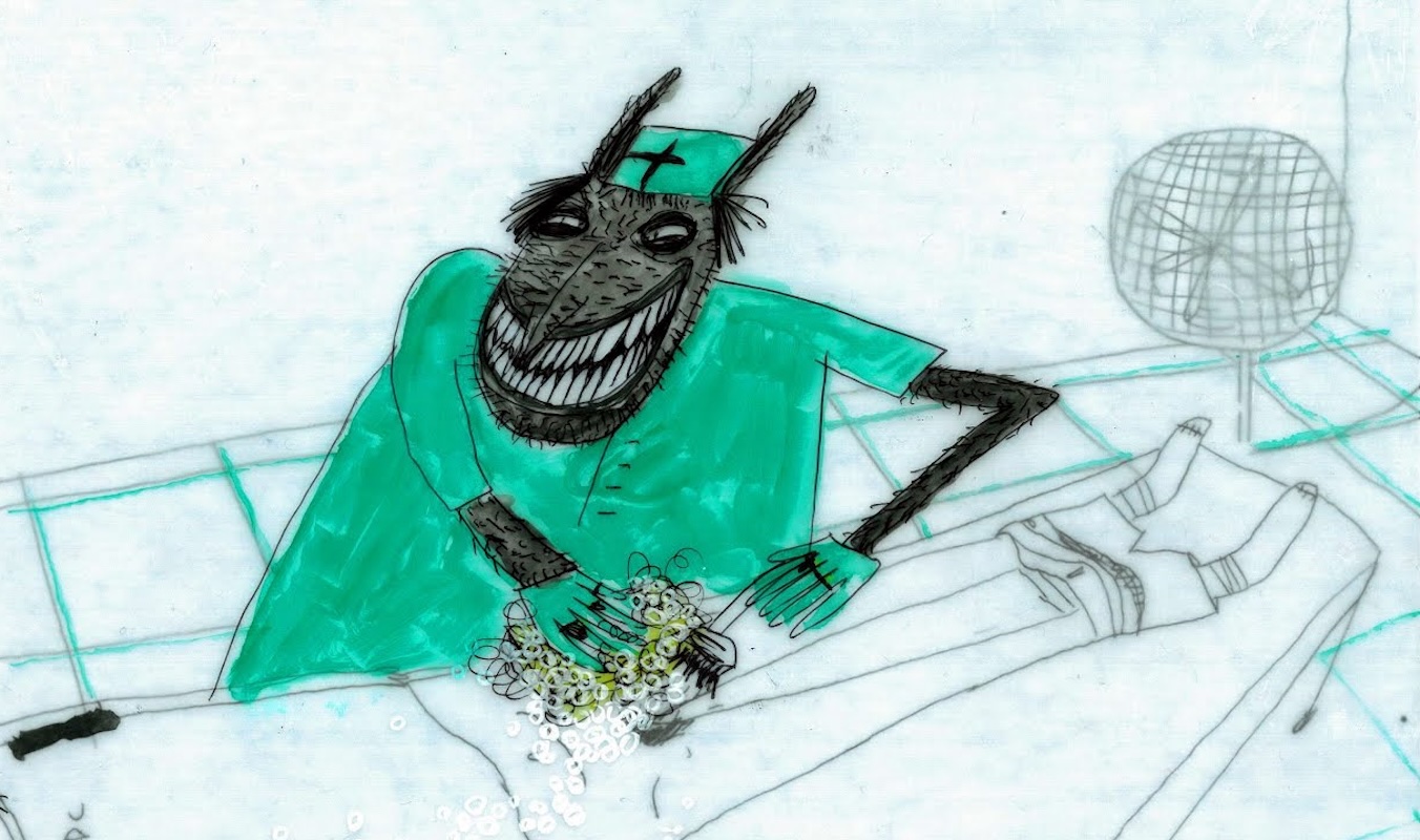 A cel animation, brought to life with ballpoint pen for a vintage flyer look, Bunnyhood reflects Maheshwari’s unconventional path into animation. An initial idea to start a fashion brand led her to a desire to create a promotional film, a process that sparked a wider fascination with the medium. This DIY, punk-inflected ethos – particularly striking given the film’s origins within the prestigious NFTS animation course – runs throughout the short, infusing it with unpredictability, dark humour, and a sense of creative freedom that resists polish in favour of expression.