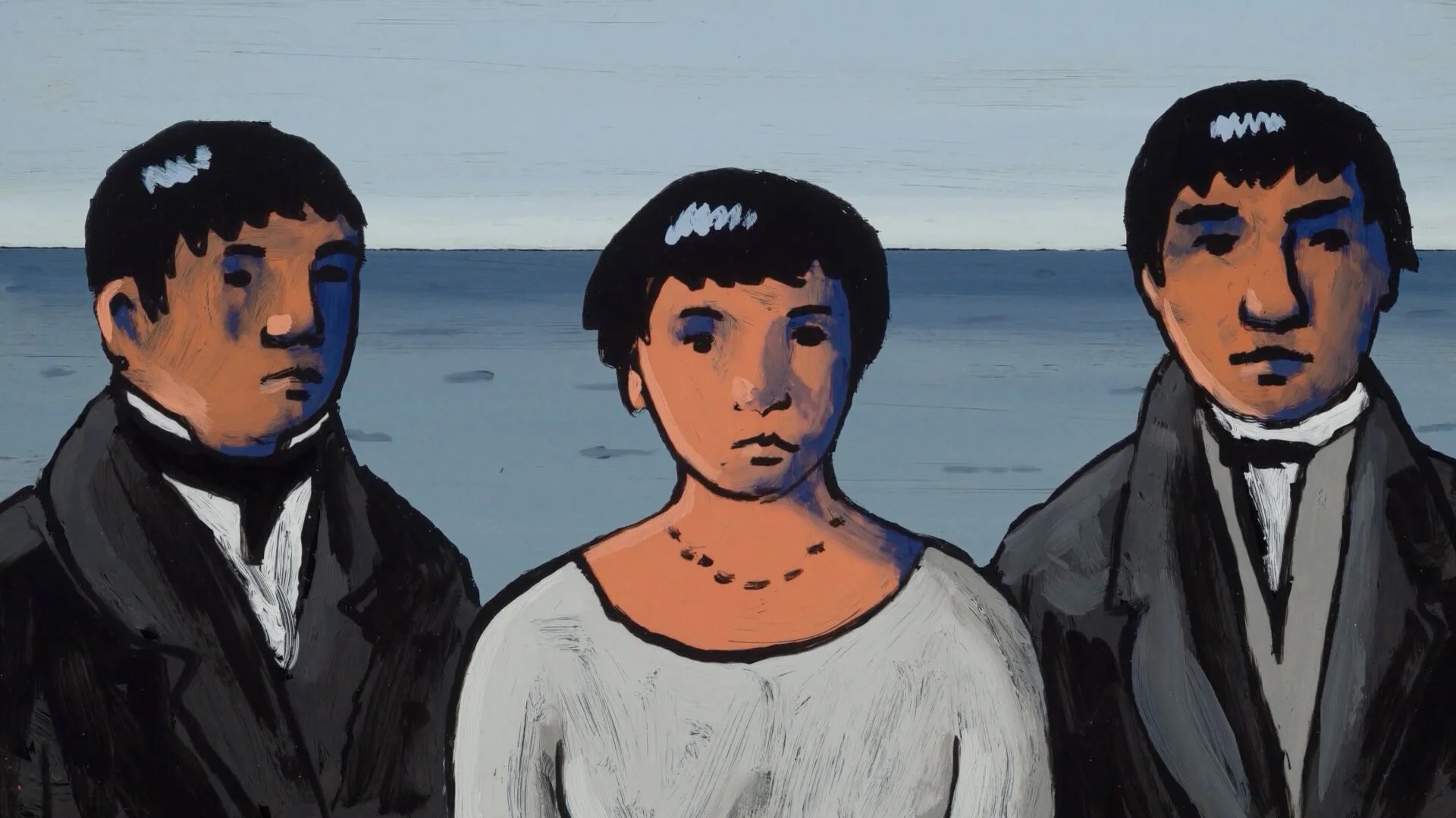 The film is a dialogue-free “creative interpretation” of a real historical episode: three Tierra del Fuego natives who were taken from their homeland in 1829 and transported to London, where they were educated for several years in the values of Western civilization. Schwizgebel frames the story with opening and closing title cards, and while I’m not always a huge fan of relying on text in film, it’s hard to deny how effective it is here. In fact, the film contains only two sentences of written text, yet they carry a surprising amount of weight.