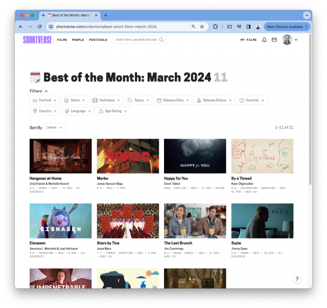 If you’re looking for more Best of the Month action, then head over to Shortverse, where the team has selected a further 11 titles, from the March uploads, to champion. From a new Jim Cummings short to a family-friendly short highlighting the joys of the written language, there’s something for young and old (and everyone inbetween) in this collection.