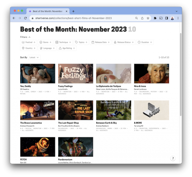 Over on Shortverse, our team picked 10 shorts as our Best of the Month selections for November 2023, including a couple of short docs hoping to make the Oscar shortlist, Apple’s excellent new Christmas ad and the recent Best in Show winner from Siggraph 2023.
