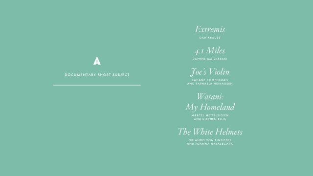 For greedy folks that don’t want to wait for theatrical or iTunes releases of these films, the Documentary category will be most kind. Netflix is represented by two films, Extremis and White Helmets—if you’re a subscriber, they are available to you right now. For web viewers, Daphne Matziaraki’s 4.1 was a NyTimes Op/Doc selection. It is available to watch in full, and was included in our playlist of short films on the Syrian Refugee Crisis. Joe’s Violin was picked up by Condé Nast, and is playing right now in The New Yorker’s Screening Room.