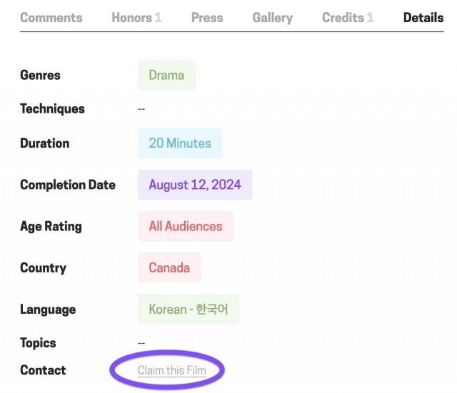 If you’ve qualified for a major award, this is the most basic step. Go to Shortverse and search for your page to see if it has already been added. If it has, you can claim it, or, if it is not on Shortverse yet, sign up for free and make a page. If you’re in Oscar contention, message us to include it in our comprehensive collection of contenders.