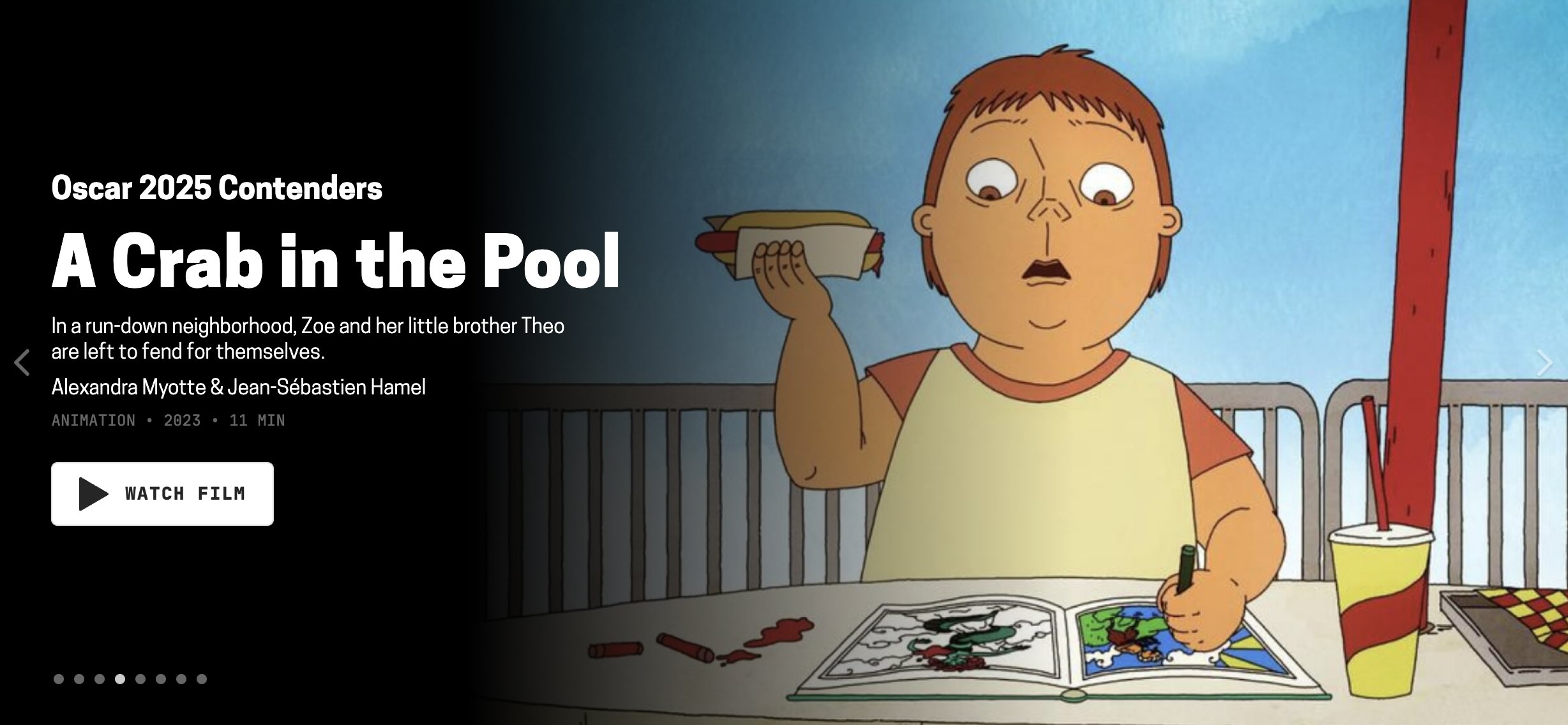 As one of the oldest outlets for short films online, many film teams come to us to be part of a For Your Consideration campaign. To take the Oscars as the most prominent example, in just the last five years we’ve had the privilege of featuring 23 films in advance of their nomination, often serving as their online premiere partner. This is not meant as a brag, but we have declined a greater number. At the 94th Oscars, all 3 category winners were streaming on Short of the Week the night of the ceremony and we were tickled to get a shoutout from Ben Proudfoot in the green room after.